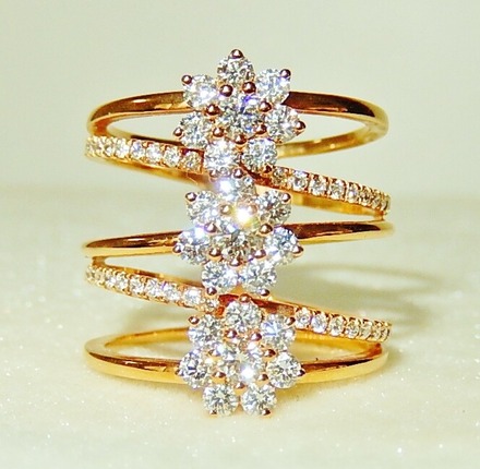 ★★ フラワーモチーフ と 直線 を 合わせた 大人可愛い 幅広 ダイヤ リング ♪♪★★